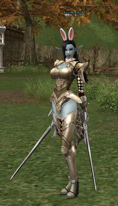 耳を付けてみましたw。ベタですがうさぎ。大量の素材はクランの方に全量いただいてしまいました。むぅ、何かお返しができるまで精進します。