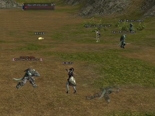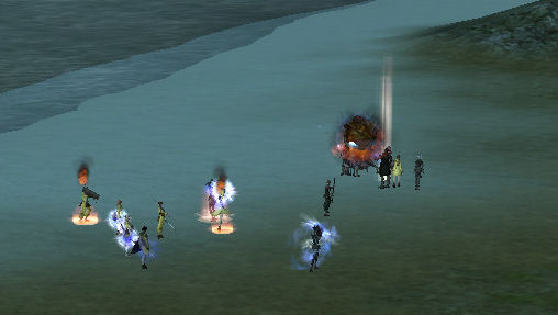 一列に並んで海岸で斬りまくってる。名前がみんな日本語なんだけど、花・月・妹・女とかの単語を“の”でつないだだけの無意味な名前。中華ってやつでしょうか。仕方ないので彼らのいないところで狩る。