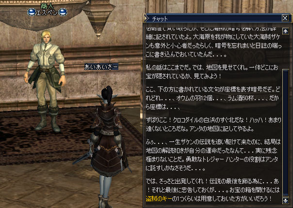 謎の地図の切れ端が10枚集まったので、宝箱を開けにいってみる。
