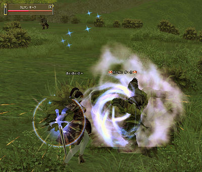 ふと気がつくと先ほどの二人組が戻ってきた。やべ、邪魔かな?と思ったら「クエモン狩りですか?」。「そです」と返事したらバフもらっちゃった。うれすぃ~!急に絶好調に。