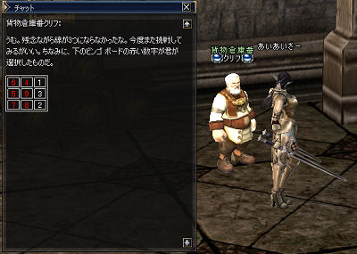 ぐるっと回って元の道に戻る。通り道を塞ぐMOBは仕方ないので斬っていく。倉庫番のメダルが10個になったので、ゲームしにまた隣の村まで走る。