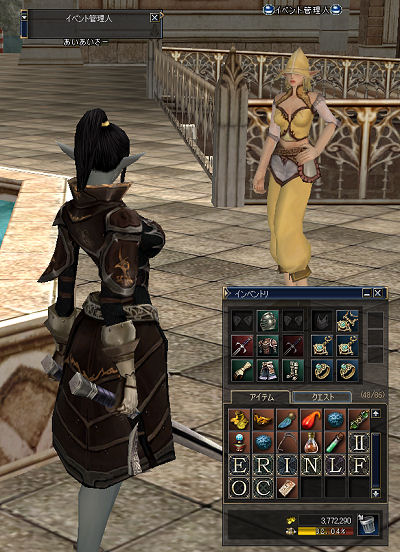 リネージュⅡ ドビアンヌ鯖でソロプレイする「あいあいさー」と金欠のため貯金キャラ「さのばびっち」、何となく始めたメイジ系「といぼねん」「阿部まりあ」の寂しい様子。