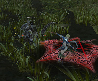 いつものように湿地で戯れてたら、カエルねらいの人と攻撃がクロス、並んで殴りまくってた。