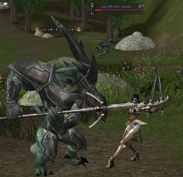 道の右手にリザードマン系がいますが、名前が赤っぽいので避けてた。