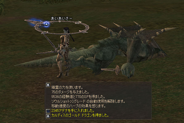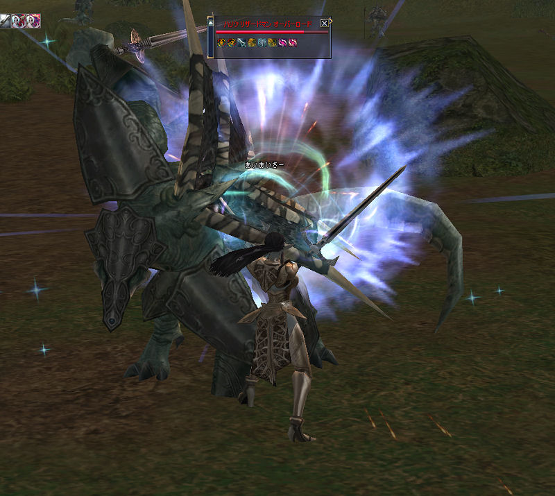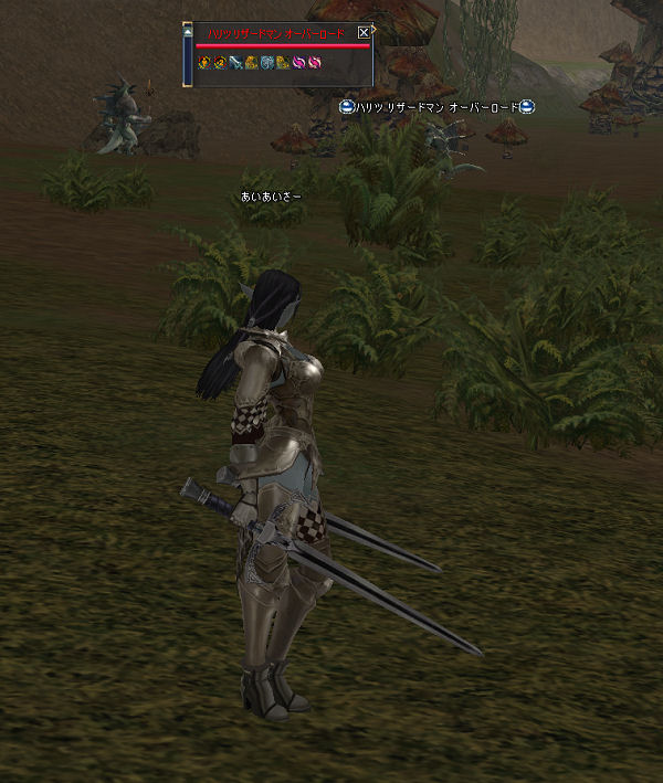 せっかく来たので、手前にいたハリツ リザードマン ファイターを斬ってみる。HPは等倍でSS使えば普通に倒せる。薄赤ネーム恐るるに足らないか?なんて調子に乗って、いざハリツ リザードマン オーバーロードに特攻!ドレインエナジーのボタン押しちゃったよ~ん!
