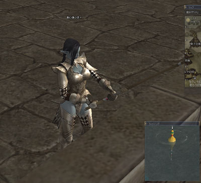 魔道の森へ歩いてて思いつきで釣りをしてみました。アイスルアーとか言うヤツが残ってるので。FPでの釣りは初めてですなあ。宝箱が連れましたが、別段珍しいものでもないよねえ。次のクエにつながるらしいですが、もらえるのがエルブン指輪らしいぞ。持ってるんだけどな。