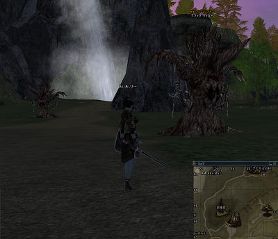 くそピクシーは七面倒くさいことを言っている。木はブラックウィローラーカー切ってこいと言う。ゾンビ狩りしてる頃、沼地にうろうろしてたっけね。沼地へ一直線。あれ?いない。そういえばさっき滝の前にうじゃうじゃいたな。行ってみる。