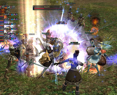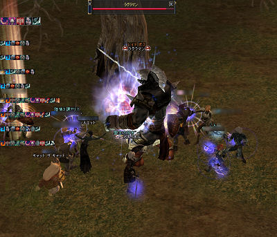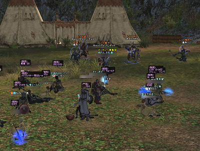 傭兵とやらは無視との指示なのでもう一つの部下を殴りまくる。2~3匹を片付けたあと本体へ。どうでもいいですが、これだけの人数がかたまってるとターゲットするのも一苦労ですねえ。いつのまにか勝手にタゲとれちゃってることもあるしさ。さっきよりタゲをとるのは簡単なのですが、倒したはずの部下がまた湧くので忙しいのなんの。タンカーらしく殴られていたらずんずんHPが減り始め、何かしゃべっておこうと思ったら死んだよ。今日3度目の死亡。昨日26歳で終わったのに、いま25歳と半分(笑)。