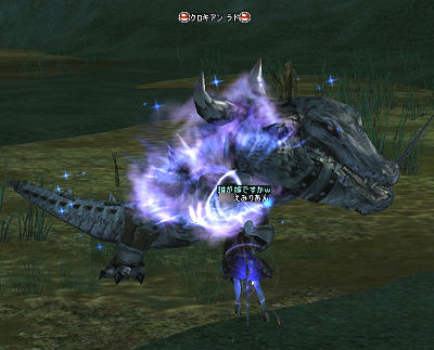 イベントのお祭りですから、SS全開です。ソロでは考えたこともないですよ、全開使用は。まとめ買いして、持てるだけ持ってGKで飛んで、キュービックちゃんも全開でワニ狩り開始。ラド系はハーブ落とさないんですね。それでも、あいあいさーがFP着てここに来たときとは比べものにならないほどザクザク狩れます。ぶたバフすごい。