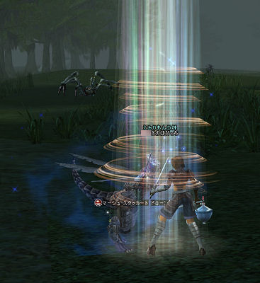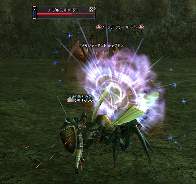 蟻の巣では3回死亡。南側から行けばなんとかなるのは知っていましたが、ちょうど槍をやってる人がいて通りづらいので東側から入ってみたらきびしいのなんの。4度目は槍の横を通らせてもらって目的地へ。一匹だけでもなかなかキビシイ。牛乳は4回で30本以上消費、瞬間POTも10個全部消費。