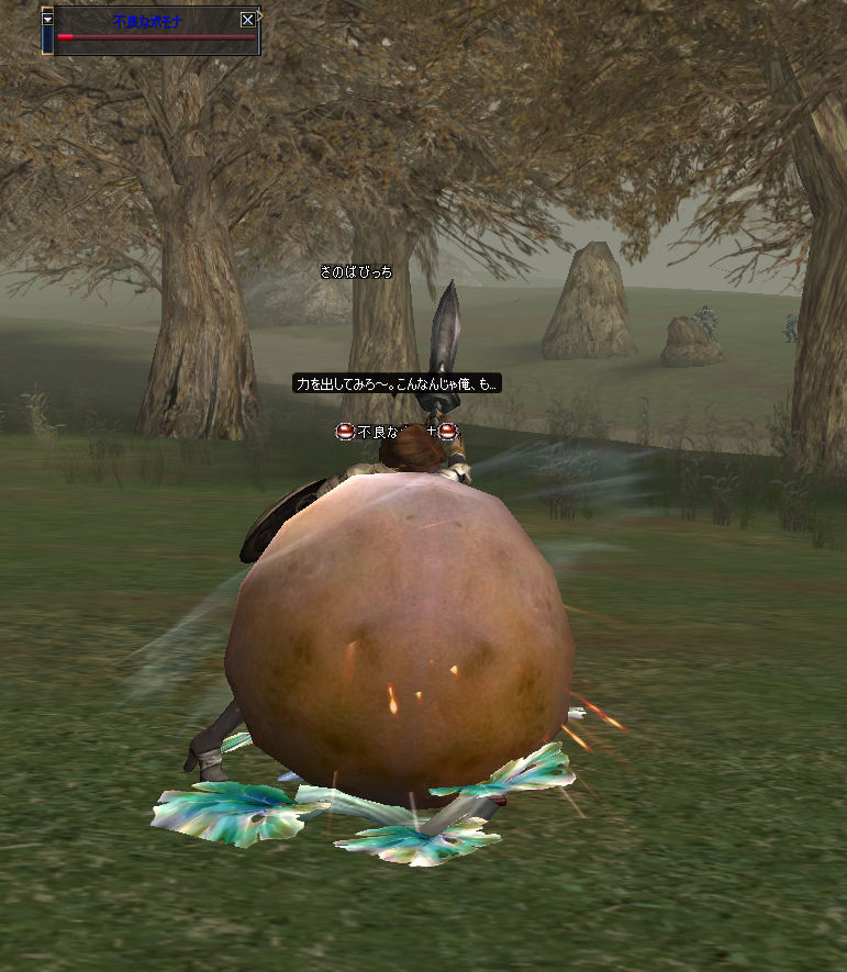 Lv19になっても何ら変化はなく、3~4匹斬っては休憩の繰り返し。ネクター、Lv20以下ではあまり出ないような噂ですが、ぽろぽろとは出ます。小さいのを2個割ってみました。
