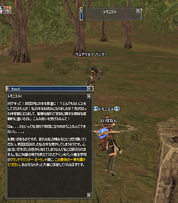 おとなしく船に乗って話せる島へ。島の真ん中まで走っておっさんに話しかける。そういえばこの辺で狩りしてるときにみたな。