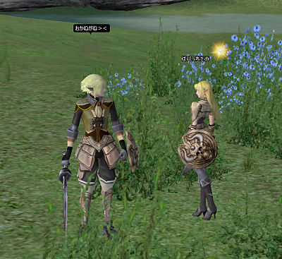 もちろん、初めて会う人です。普段チャット欄を日本語入力状態にしてないから慌てちゃいます。ご新規さんなのかなあ、こちらのNグレにしてはいい装備にきがついていないようす。武器がしょぼいからね。